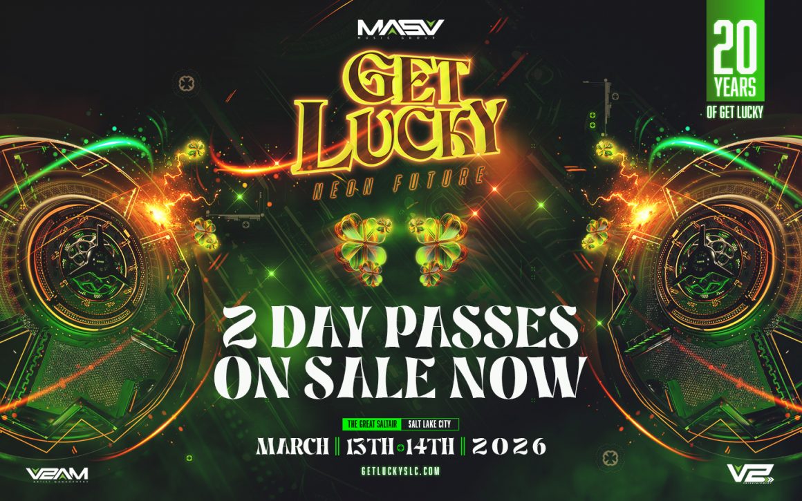 Get ready for the return of Get Lucky in 2026! Your favorite festival will be taking place March 13th and 14th, 2026, at The Great Saltair. This year’s theme, Neon Future, marks a defining moment for us as a team, serving as the first major launch event under our newly unified creative ecosystem, and the refined evolution of V2 Entertainment!