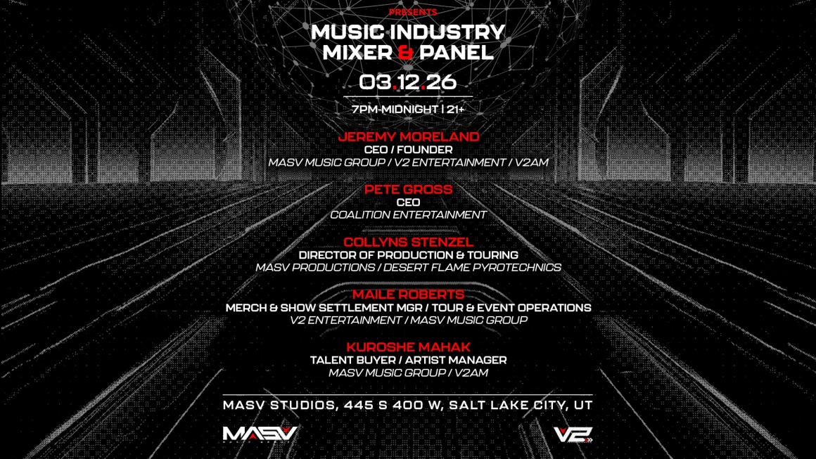 We have speakers from – MASV Music Group, V2 Entertainment, Coalition Entertainment, MASV Productions, Desert Flame Pyrotechnics, and more!